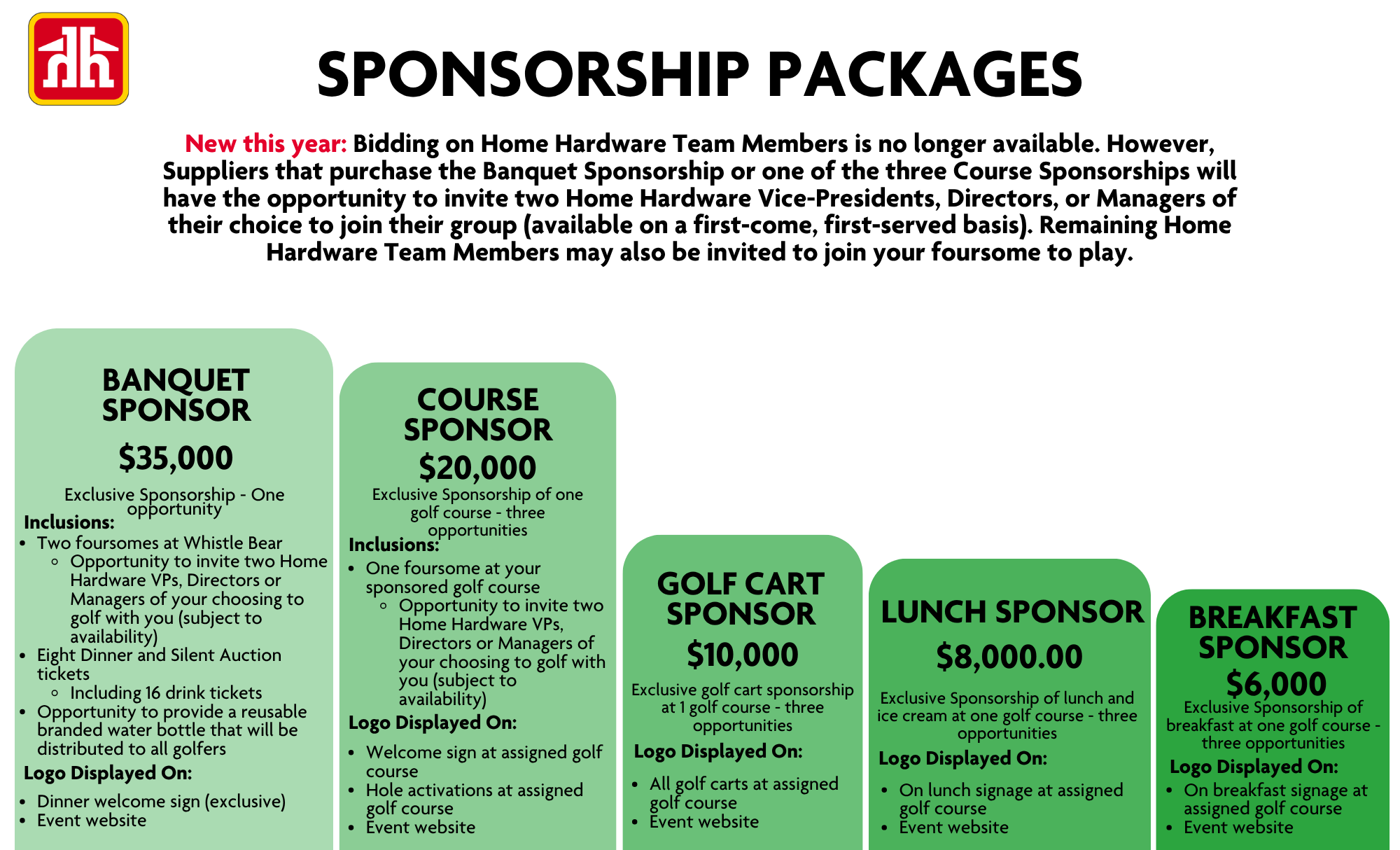 Home Hardware Supplier Partnership Charity Golf Tournament 2026: Whistle Bear Golf Club, Grey Silo Golf Club, Rebel Creek Golf Club | Tuesday June 16, 2026